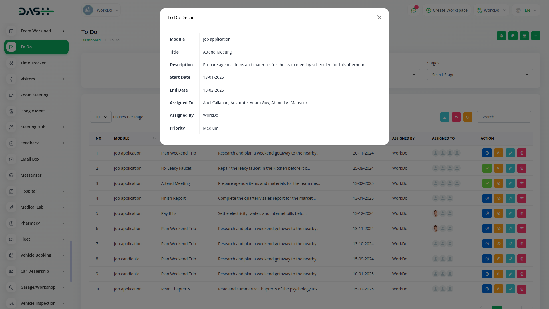 Effortlessly manage task stages, meetings, and personal ToDo lists within Dash SaaS, streamlining your workflow for enhanced productivity and organization.